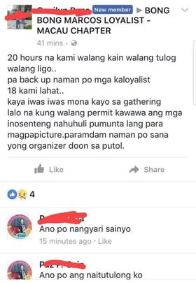 18 na BBM Supporters ang Hinuli at nakakulong umano ngayon sa Macao dahil sa pagra Rally ng walang Permit